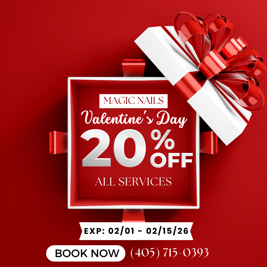 Come and experience our exceptional services at Magic Nails . Gift Certificate Available- Appointment & Walk-ins Welcome!